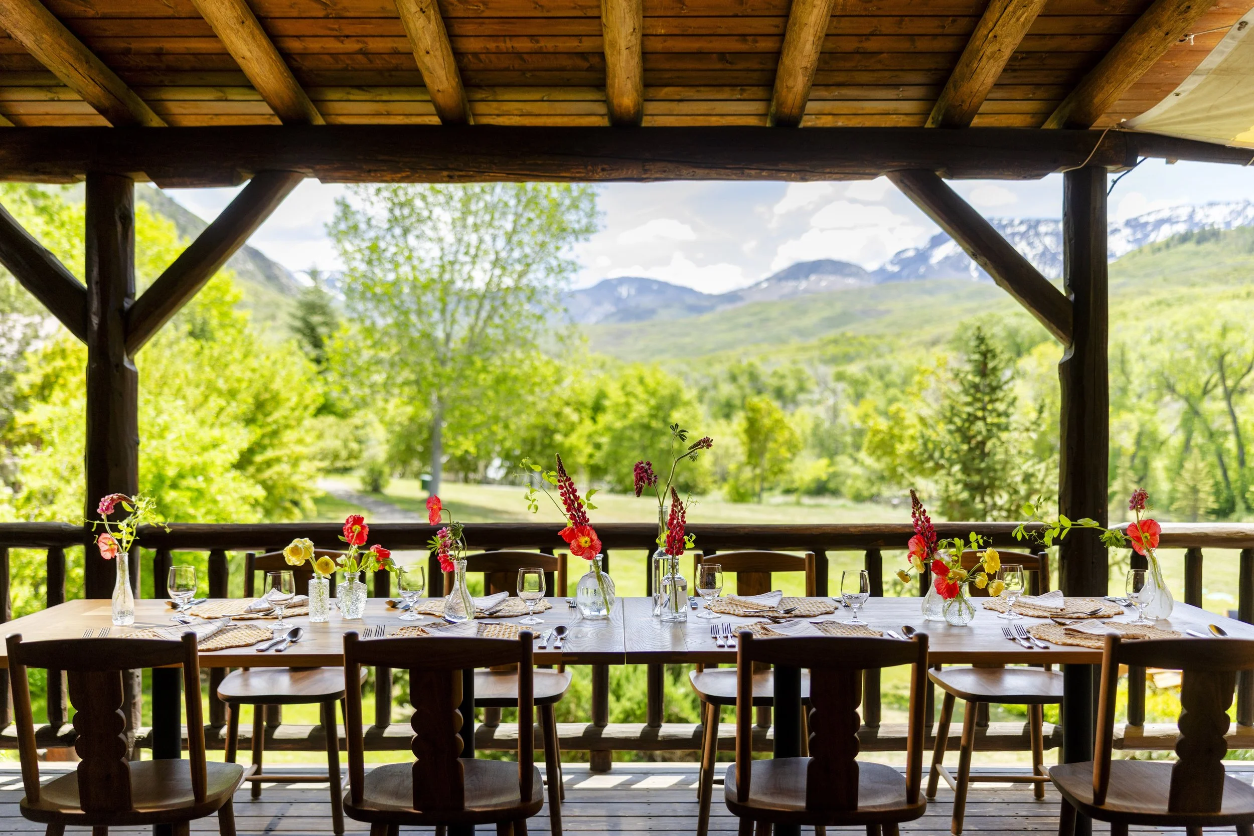 The Pavilion is the communal center of the Smith Fork Ranch. This indoor/outdoor overlook seats up to 40 - but feels great organized for 20 with a dance floor. Our guests love the al fresco dining experience complete with the sound of the rushing river.